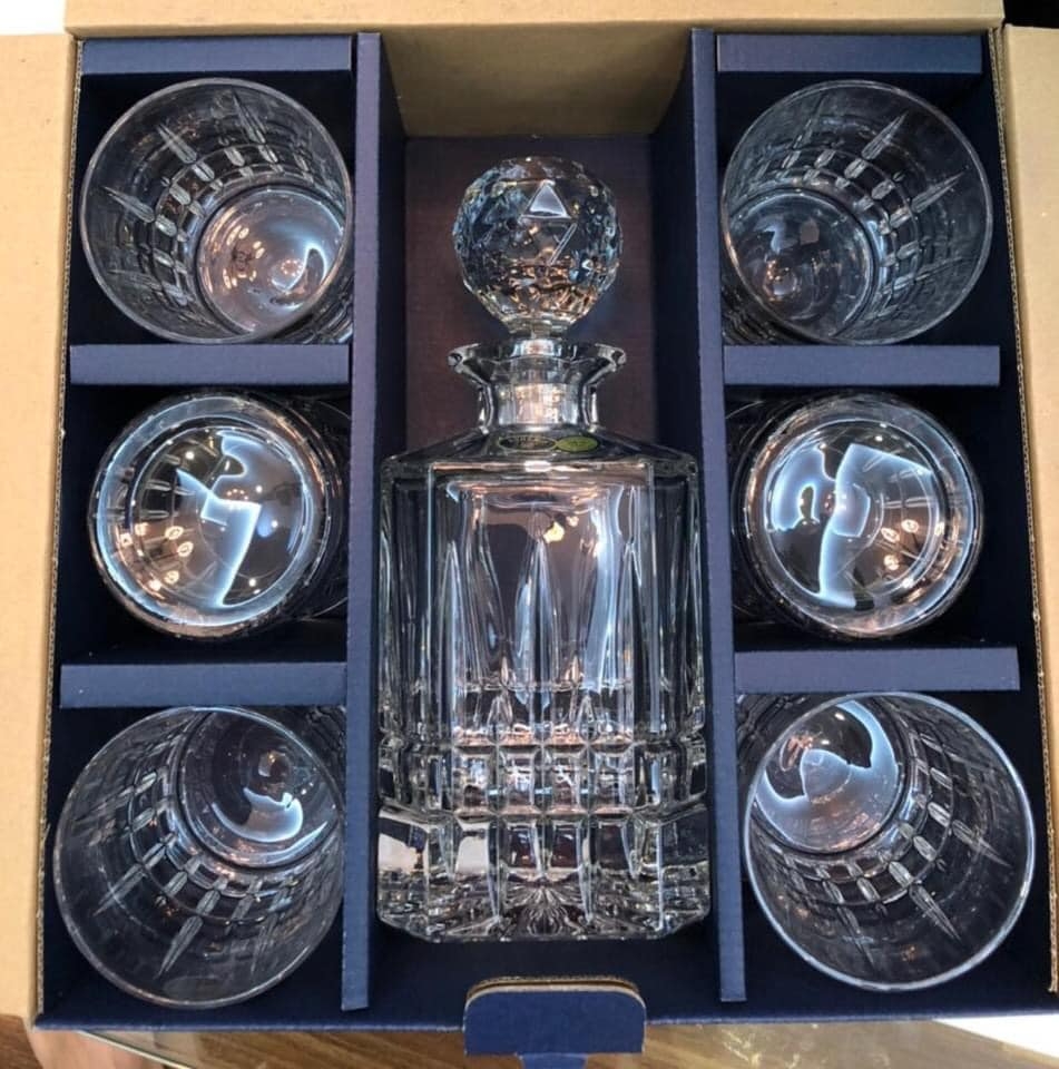 Gồm: 1 bình đựng rượu dung tích 0,85 lit + 6 cốc dung tich 320ml