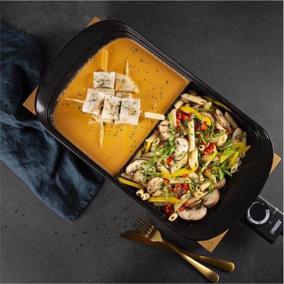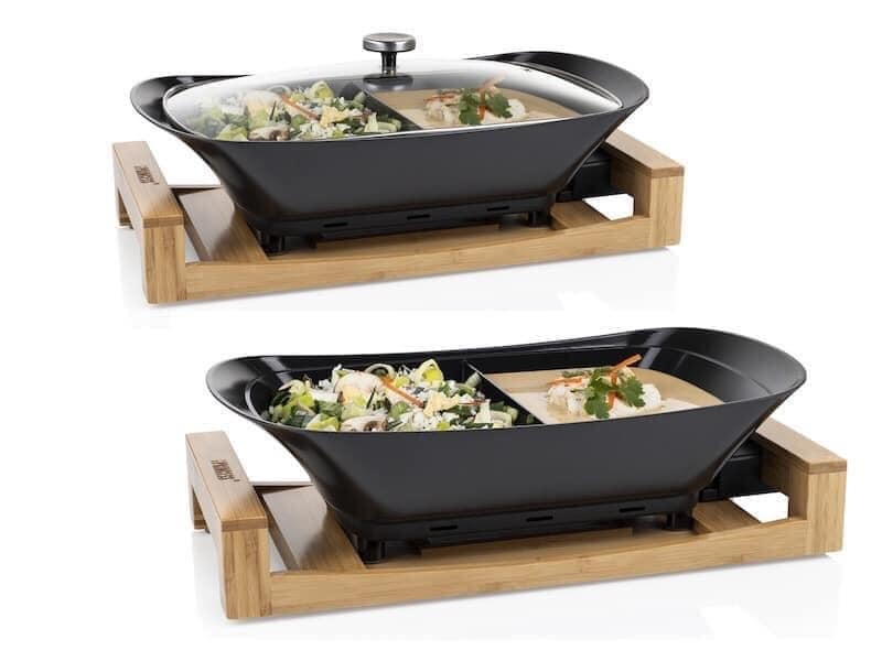 Nhờ sự phân chia độc đáo ở giữa nồi, bạn có thể chế biến hai món ăn cùng một lúc. Bạn có thể sử dụng một mặt cho thịt, cá hoặc rau và mặt kia cho cơm, khoai tây hoặc bánh mì. Hoặc cho 2 khoang lẩu khác nhau.